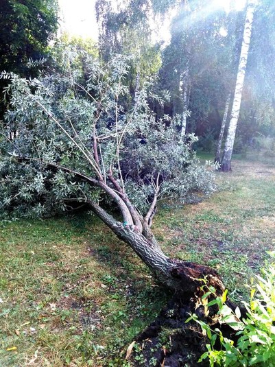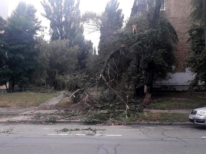Як повідомляє комунальне об’єднання «Київзеленбуд», о 21:11 до аварійно-диспетчерської служби почали надходити дзвінки про падіння дерев у зв’язку із негодою. Загалом було 11 викликів, прибрано 10 повалених дерев.