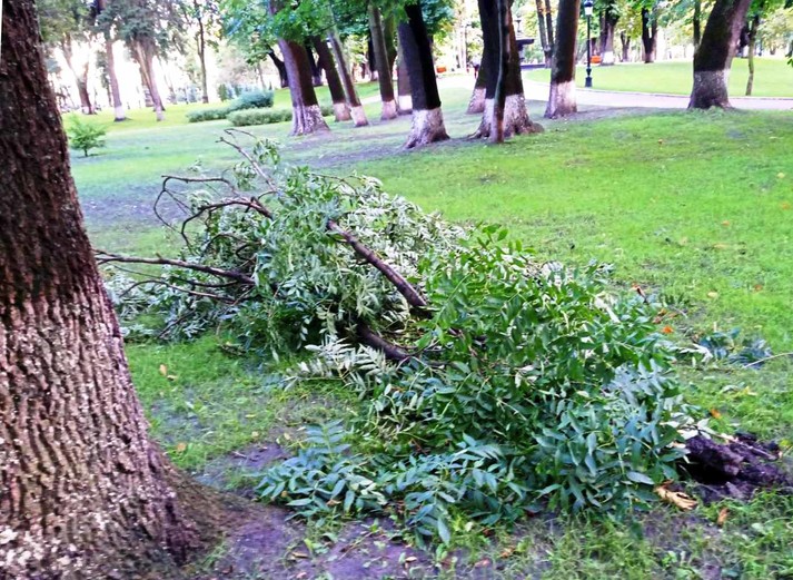Крім того, озеленювачі зазначають, що цього разу вітер наламав багато гілля.