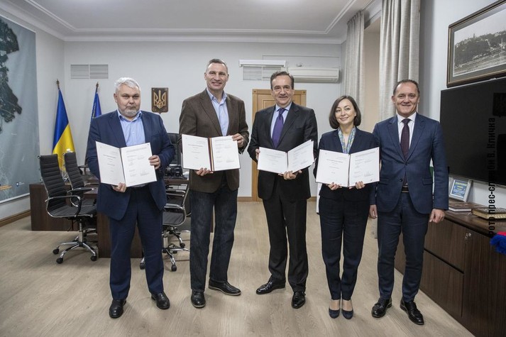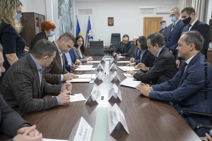 Угоду підписали мер столиці Віталій Кличко, голова представництва Європейського інвестиційного банку в Україні Жан-Ерік де Загон та голова Представництва ЄС в Україні посол Матті Маасікас. Про це повідомляє пресслужба міського голови.