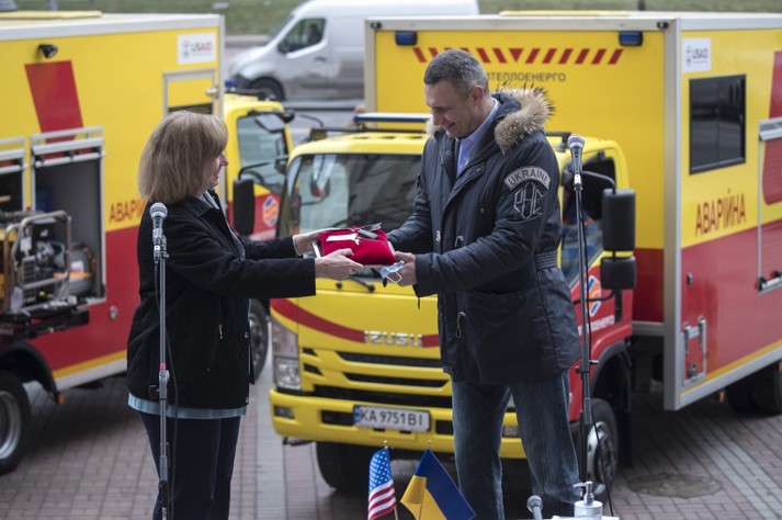 Сьогодні, 27 січня, Агентство США з міжнародного розвитку (USAID) передало Києву три аварійно-ремонтних автомобілі та одну пересувну діагностичну лабораторію для оперативного виявлення та усунення аварій на тепломережах міста. Ці авто загальною вартістю $735 тис. – допомога від USAID – дозволять КП «Київтеплоенерго» швидко відновлювати теплопостачання до помешкань киян після аварій на мережах і допоможуть поліпшити якість послуг для жителів міста.
