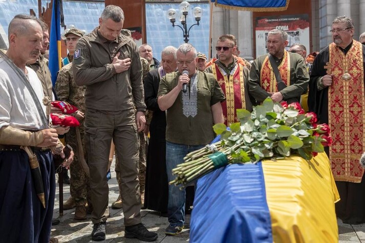 У середу, 22 червня, на Майдані попрощались із командиром батальйону «Карпатська Січ» (49-й окремий стрілецький батальйон ЗСУ) 57-річним Олегом Куцином, позивний «Кум».