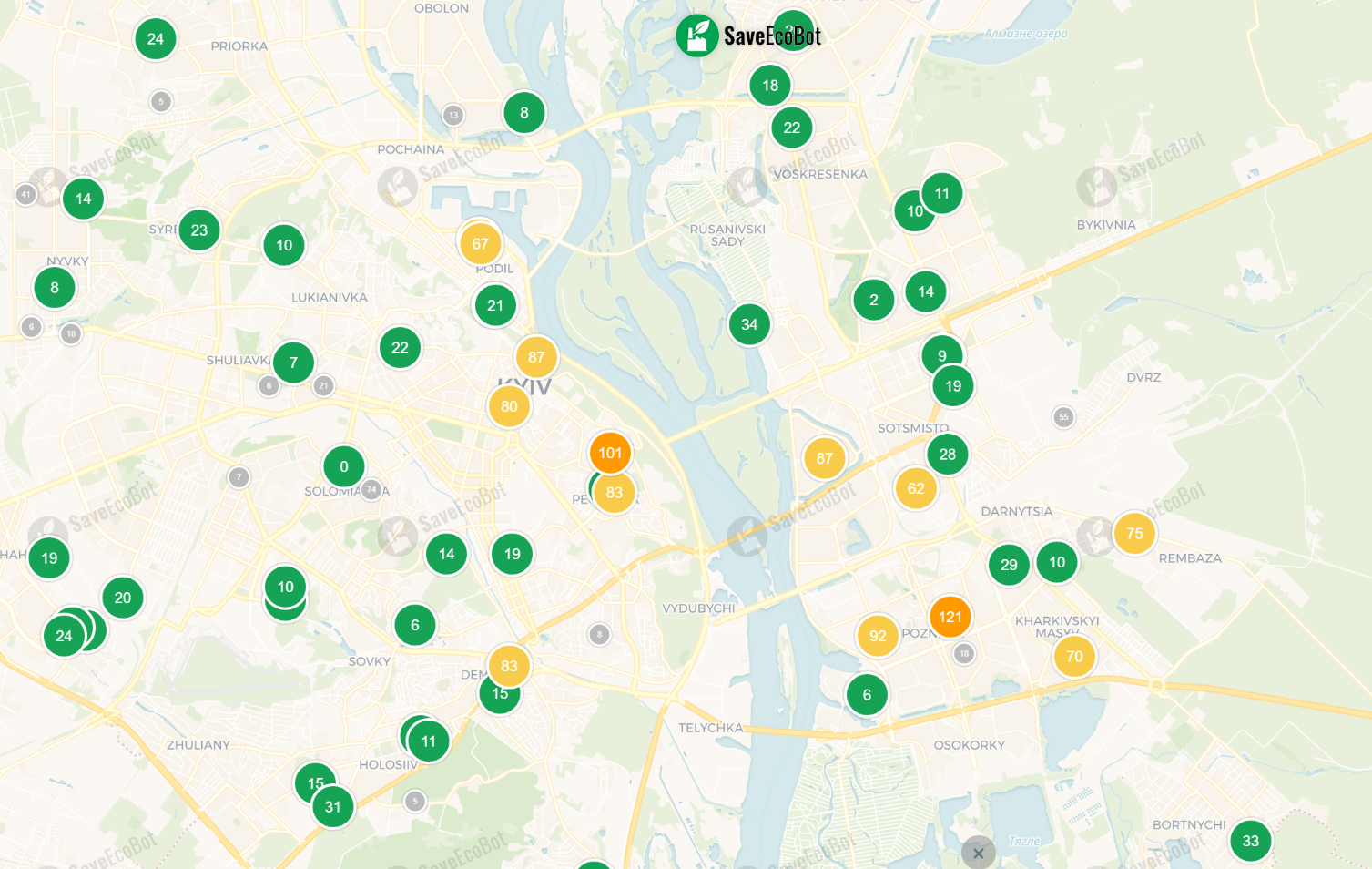 Найбільше забруднене повітря в Голосіївському та Шевченківському районах, а також на Позняках.
