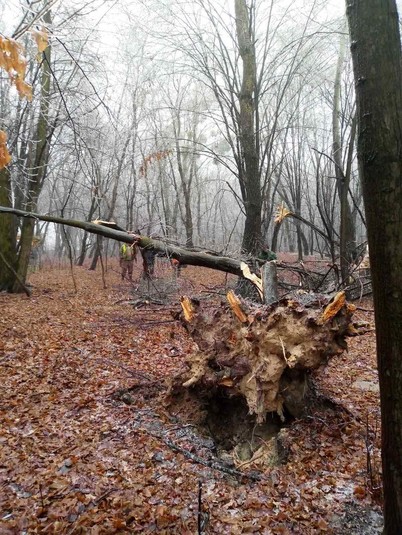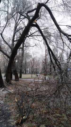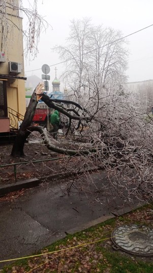 Як відомо, 8 грудня та вночі 9 грудня в Києві йшов крижаний дощ. Деякі дерева не витримують обледеніння. Вдень 8 грудня було зафіксовано декілька падінь дерев через погодні умови.