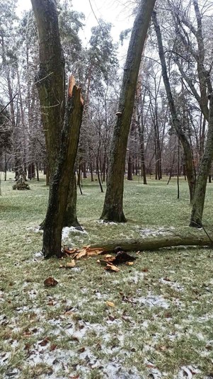 Зеленбудівці зазначають, що під вагою криги, а також під час налипання мокрого снігу ламаються навіть здорові дерева, оскільки не витримують навантаження.