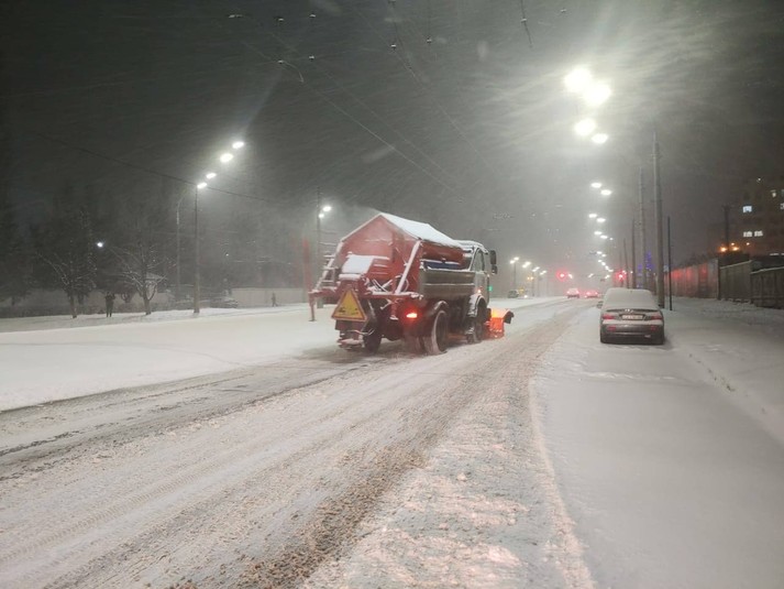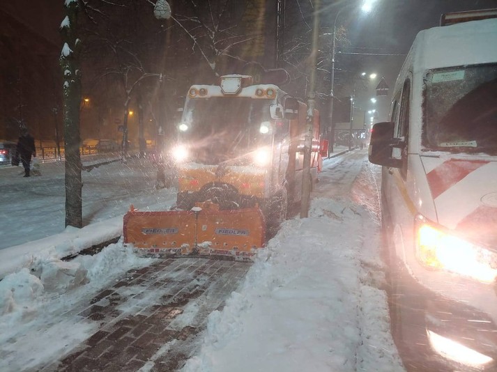 Уночі розпочали роботу колони спецтехніки. Це ефективний спосіб очистки основних магістралей від снігу.