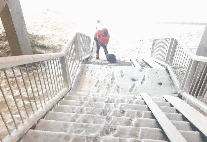 Зупинки, вузькі тротуари, сходи підземних переходів очищають 443 працівники у 64 бригадах з ручного прибирання.