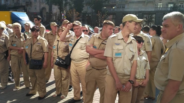 За попередніми оцінками, всього під КМДА зібралося близько 70 протестувальників. Частина підтвердили поза камерою, що це наказ керівництва.