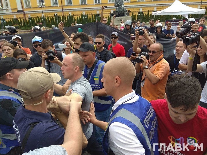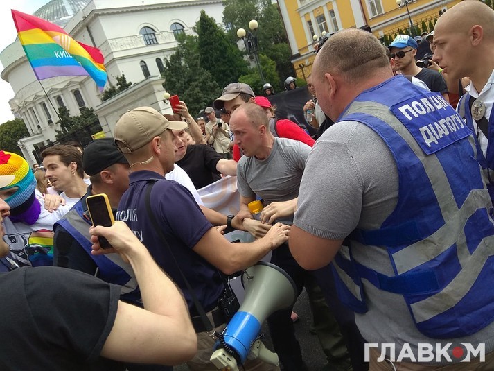 Тільки-но розпочався Марш рівності, як противники заходу кинулись переймати колони.