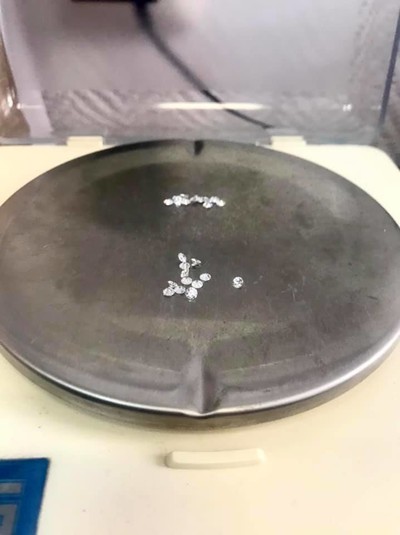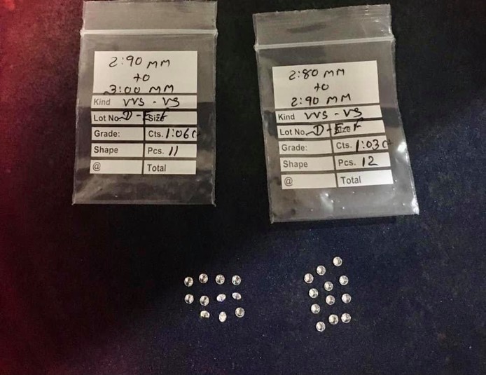 Насправді ж у двох поліетиленових пакетиках знаходилися 23 безбарвні прозорі камінці, які детектор дорогоцінного каміння визначив як діаманти. Їх розмір від 2,8 до 3 мм.