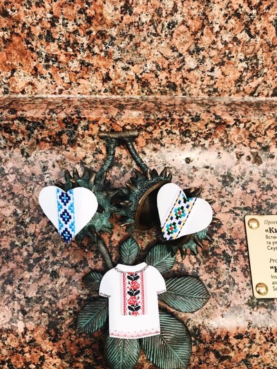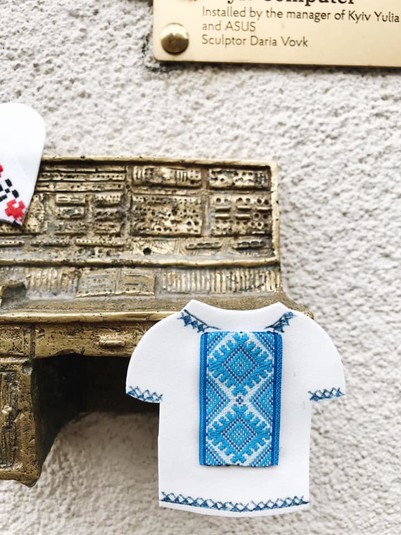 Сьогодні, 16 травня, у День вишиванки бронзові міні-скульптурки проекту «Шукай» у Києві отримали святковий одяг. Про це повідомила на своїй сторінці в Facebook автор і куратор проекту «Шукай» Юлія Бевзенко.