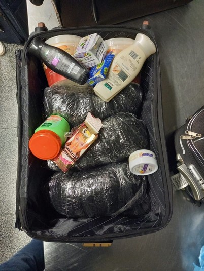 Поліетиленові пакети з пігулками білого кольору насипом без упаковок, обклеєні скотчем, приховувалися в пластикових контейнерах та чорних пакунках різного розміру серед особистих речей авіапасажирок.