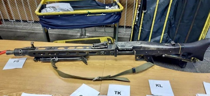 Як зазначив відправник в декларації, в посилці мали знаходитися запчастини. Проте, замість задекларованих запчастин, на сканері митники виявили зброю, яку в часи Другої світової прозвали «циркулярною пилкою Гітлера», або ще «газонокосаркою». Намагаючись ввести в оману митників та скануючу техніку, відправник завбачливо загорнув кулемет у фольгу, проте це йому не допомогло.