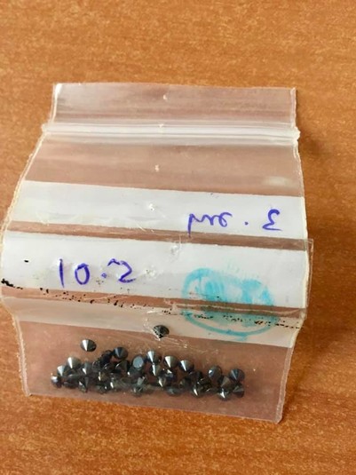 Митники вирішили ретельніше перевірити міжнародне експрес-відправлення з п’ятнадцятьма пакетиками з обробленим камінням чорного кольору розміром від 1,0 до 8,0 мм, і за допомогою детектора дорогоцінного каміння Presidium виявили, що каміння є діамантами.