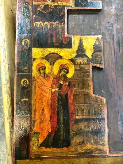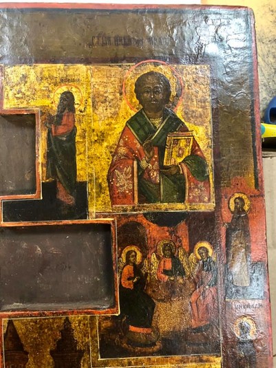 Зазначається, що ікона має розмір 40х46 см. «Виявлена святиня – так звана багатокомпозиційна, трирядна ікона, яку ще називають «домовим іконостасом», - розповіли митники.
