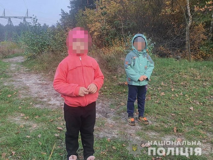 Київські поліцейські знайшли двох дітей, яких дідусь загубив у лісі (фото)