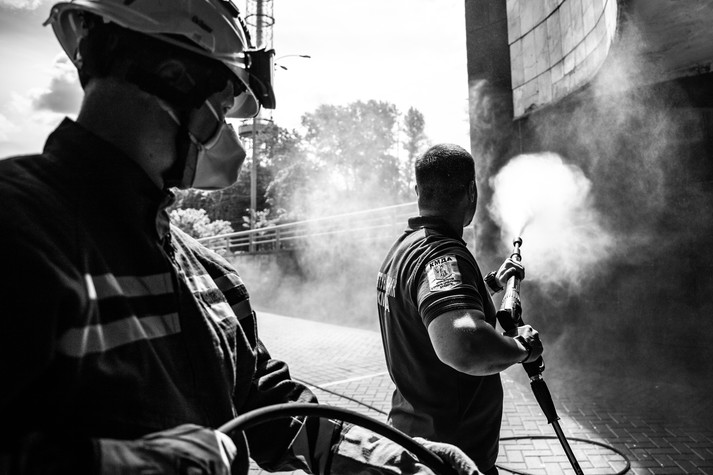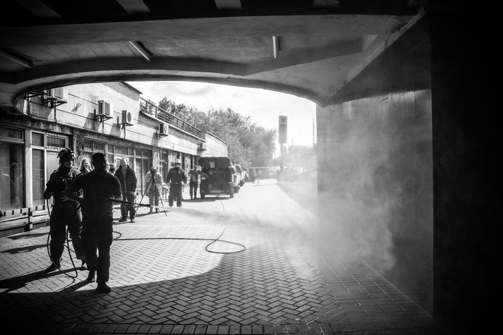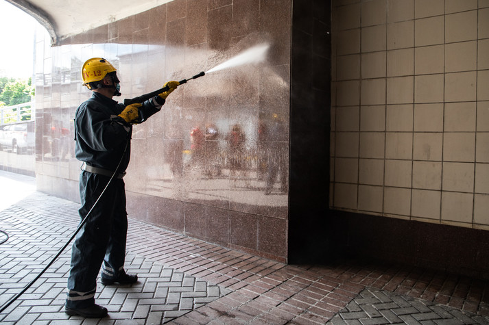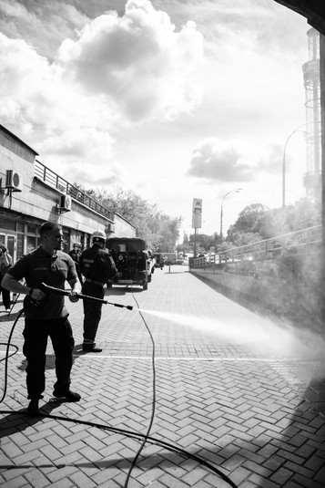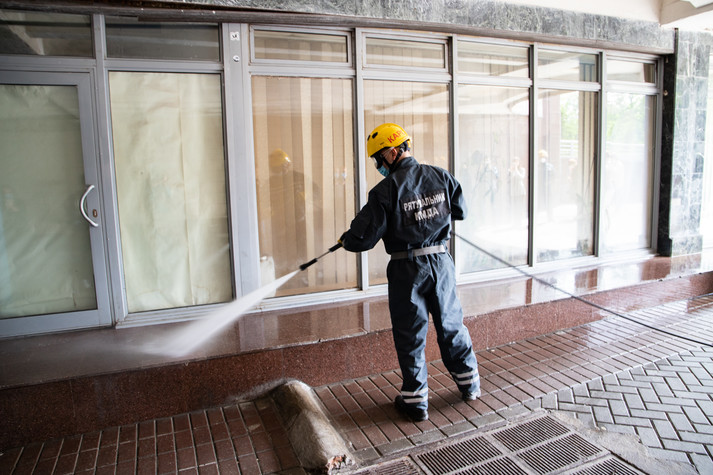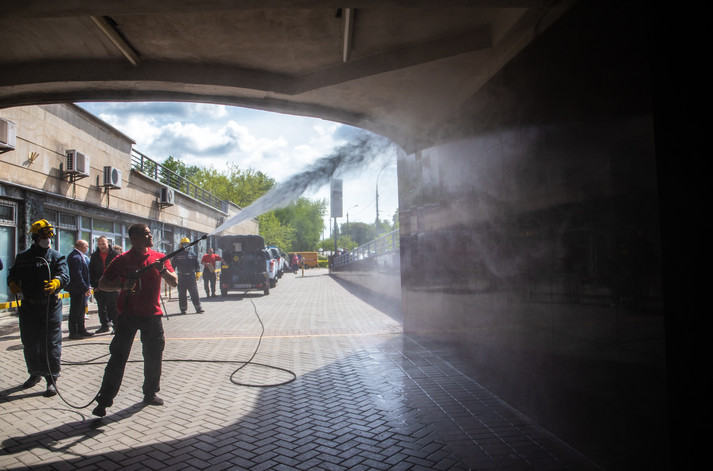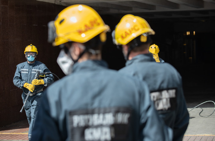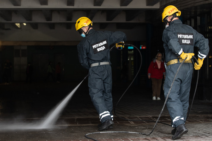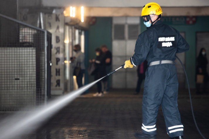 У боротьбі Covid-19 рятувальники проводять дезінфекцію місць громадського користування