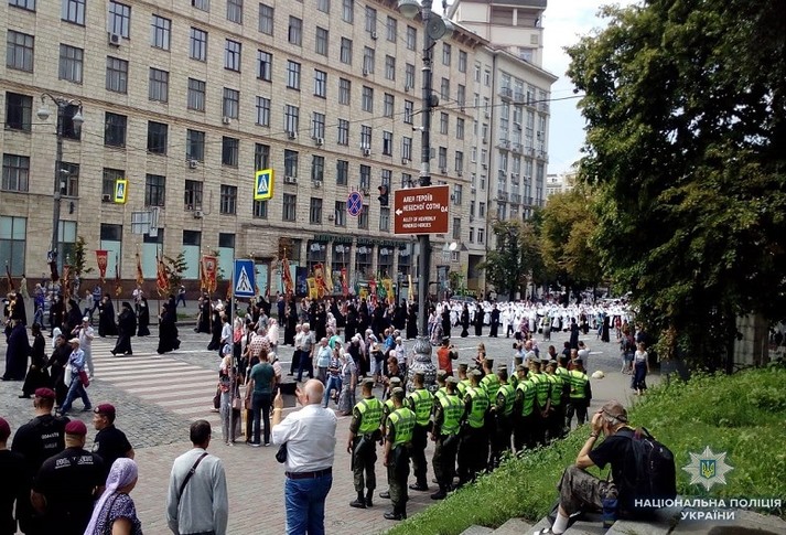 Рух хресного ходу Української православної церкви московського патріархату, приурочений до 1030-річчя хрещення Київської Русі-України, супроводжували працівники поліції.