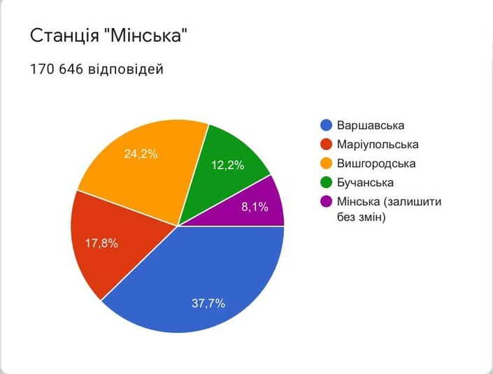 За даними опитування, станція метро «Берестейська» може стати «Бучанською», «Площа Льва Толстого» – «Василя Стуса», «Героїв Дніпра» – «Героїв України», «Мінська» – «Варшавська», «Дружби народів» – «Ботанічна».