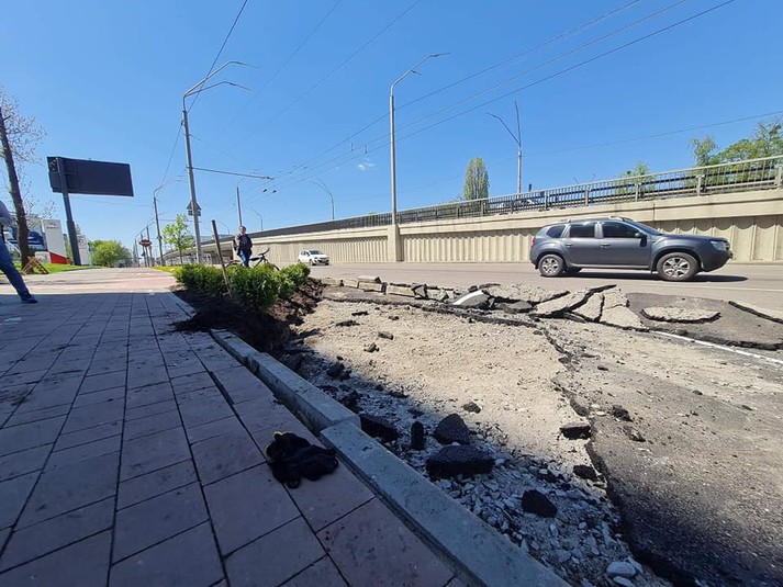 Нагадаємо, під час великодніх свят на проспекті Перемоги, 67 у Святошинському районі Києва невідомі будівельники розібрали дорожнє огородження та бордюр, частину двосторонньої велосипедної доріжки, смугу газону та почали влаштовувати паркувальну кишеню.