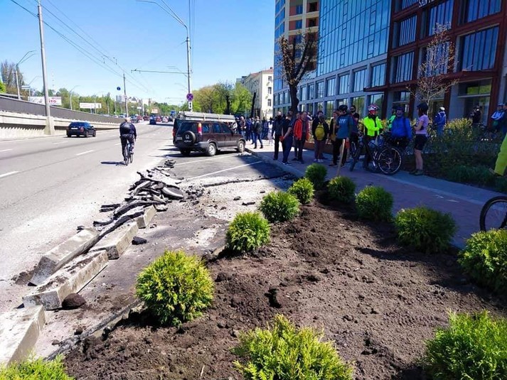 «Комунальним службам та поліції, на жаль, не вдалось у законний спосіб відстояти велодоріжку на проспекті Перемоги, що є частиною магістрального веломаршруту – забудовник, зруйнувавши частину велодоріжки, облаштував паркувальну кишеню для автівок попри приписи поліції і благоустрою. Тому кияни перейшли до більш радикальних дій», – йдеться в повідомленні.