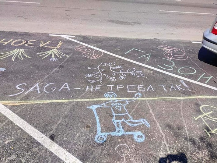 У понеділок, 10 травня, на проспекті Перемоги, 67 біля ЖК «Сан-Франциско» SAGA Development пройшла акція «Відбиваємо тротуар, велодоріжку та газон на Нивках у знахабнілого забудовника!». Про це повідомляє у Facebook спільнота «Київ – велосипедне місто».