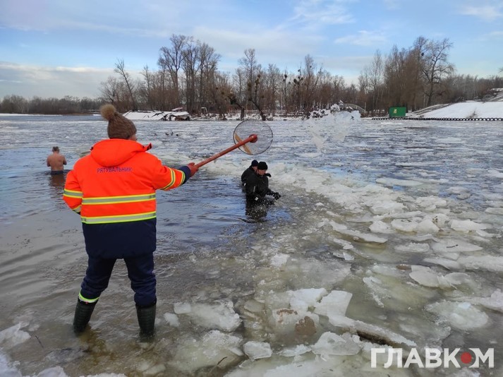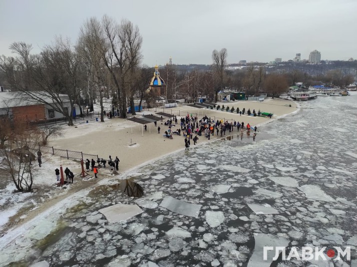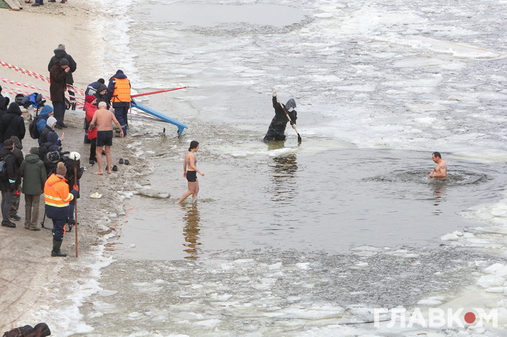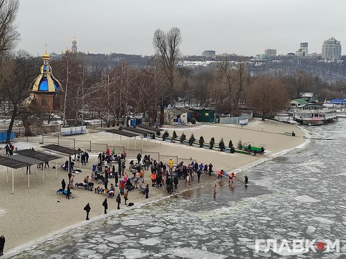 Сьогодні, 19 січня, у столичному Гідропарку кияни масово занурюються у воду. Для охочих на Водохреще пірнути в ополонку спеціальні служби розчистили від криги берег, аби люди могли вільно зайти в річку. Про це повідомляє «Главком».