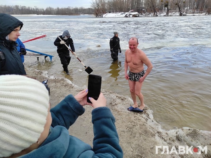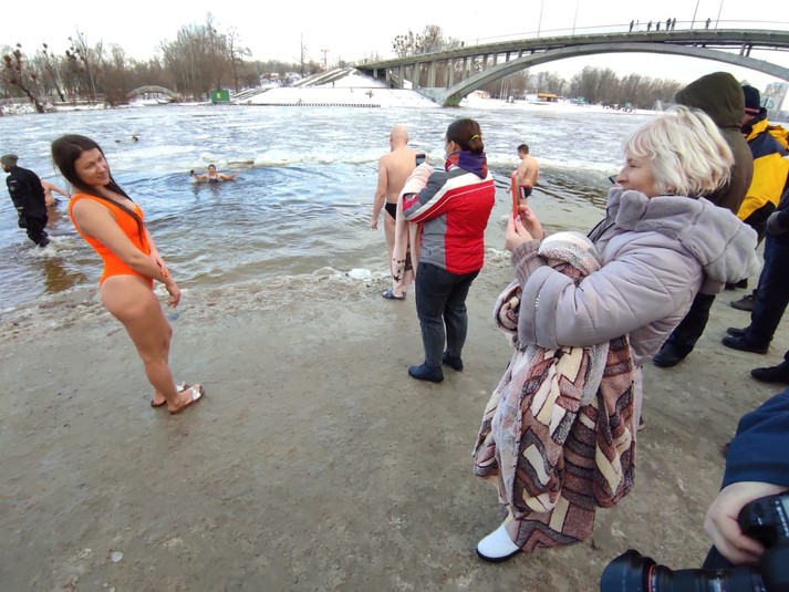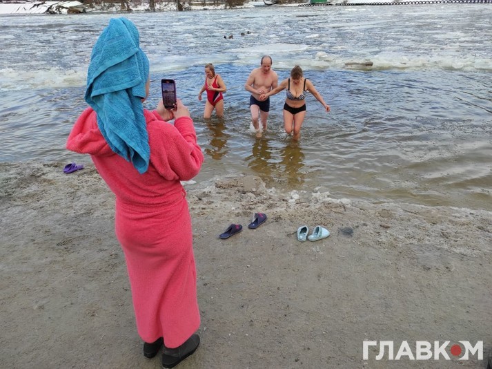 Навіть мінусова температура, а у Києві на восьму ранку було -5, не злякала жителів столиці. Хтось бадьоро купається, а комусь вистачило снаги лише фотографувати сміливців. До слова, для безпеки, на березі чергують спеціальні служби: рятувальники та медики.