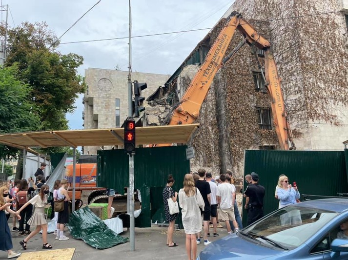 Як повідомлялося, 12 липня представники забудовника почали демонтувати фасад будівлі «Квіти України» на вулиці Січових Стрільців, 49 в Києві.