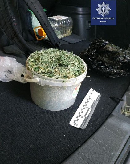 У середу, 10 червня, у Подільському районі Києва патрульні виявили чоловіка, який прогулювався з відром речовин, схожих на канабіс.
