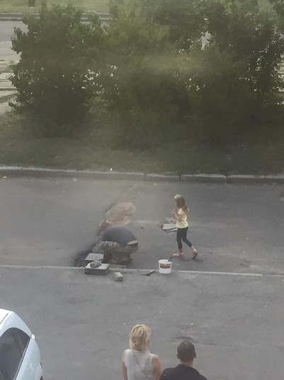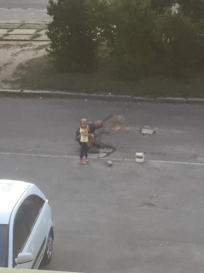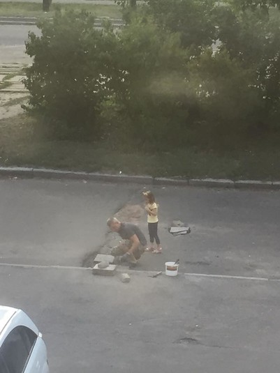 Киянин власноруч залатав діру на дорозі біля свого дому (фото)