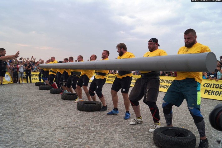 Після змагань учасники зробили спробу встановити світовий рекорд на колективне підняття труби завдовжки 12 метрів вагою 1 тонну 280 кілограмів. У піднятті металевої «колоди», виготовленої на одному з меткомбінатів Дніпра, взяло участь 12 атлетів.