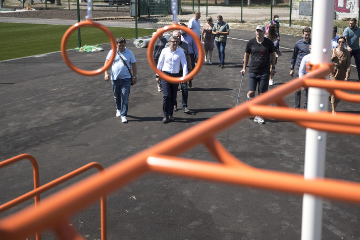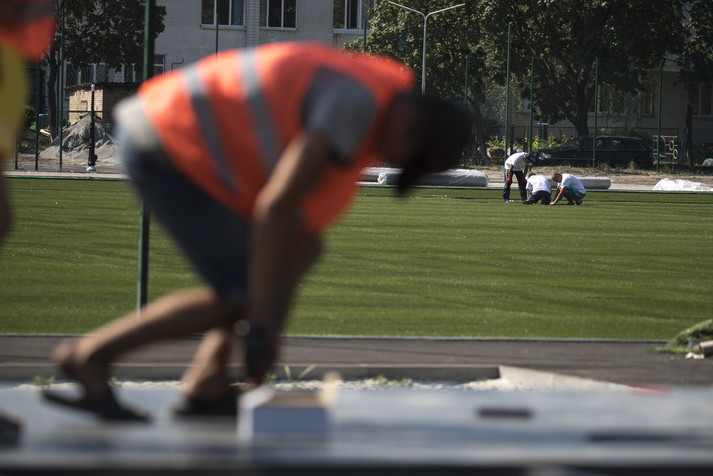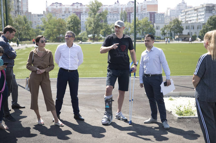 Мер Києва перевірив, як триває реконструкція міжшкільного стадіону в Оболонському районі