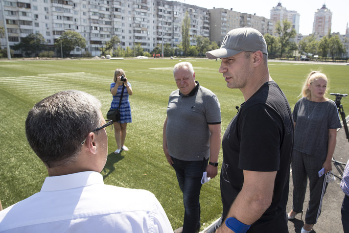 «Така ж реконструкція триває і на стадіонах шкіл № 4, № 256 та № 201. На кожному з цих об’єктів встановлюють камери відеоспостереження та антивандальні металеві сітки. Крім школярів, – зранку і в вечірній час – тренуватися на цих стадіонах зможуть і дорослі мешканці навколишніх будинків», – підкреслив Кличко.