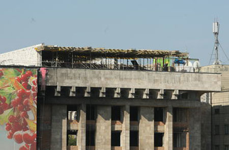 Столична влада починає демонтаж незаконної надбудови на Будинку профспілок.