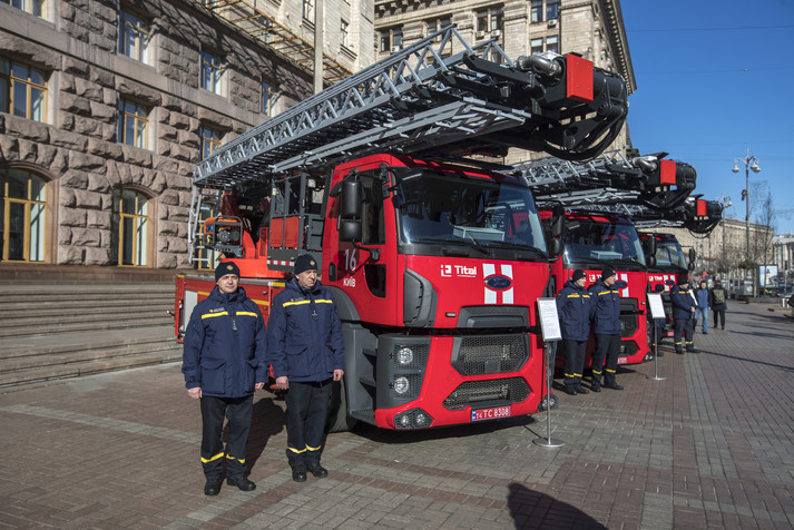 Столична влада придбала та передала київським рятувальникам три нових телескопічних підіймачі, аварійно-рятувальне авто та нові комплекти дихальних апаратів. Ще два спецавто були закуплені за державний кошт.