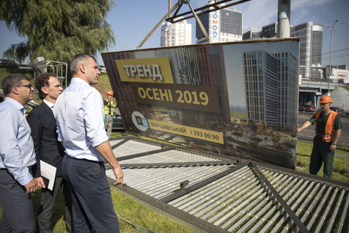 «За кілька останніх років ми демонтували майже 36 тисяч рекламних носіїв різного типу. Так, наприклад, прибрали всі носії на мосту Патона, на Либідьській площі, перехресті вулиць Чорновола і Січових стрільців, - сказав Кличко. - Сьогодні роботи тривають на розв’язці біля метро «Лівобережна». Тут розміщувалось 46 наземних рекламних конструкцій, тепер не буде жодної. Адже, за правилами, на перехрестях та розв’язках заборонено розміщувати наземні рекламні засоби. На самому Броварському проспекті ми зменшили кількість білбордів більше ніж удвічі».