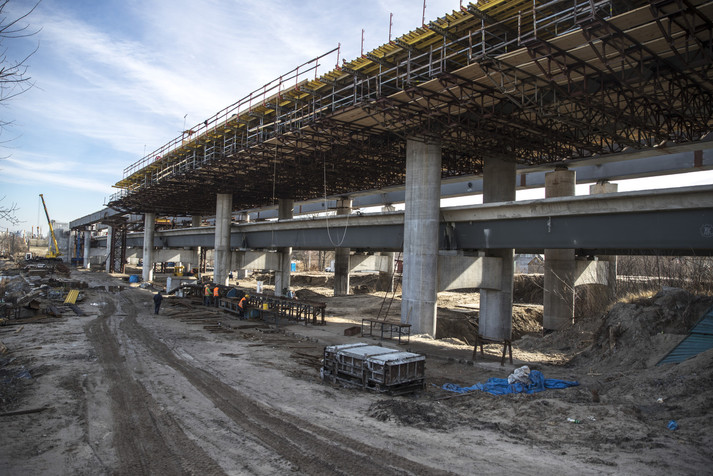 За його словами, триває будівництво заїзду на мостовий перехід з вулиці Верхній вал. Там фахівці встановили в проектне положення металоконструкцію прогонової будови вагою у 500 тонн. Роботи виконували за допомогою тих самих супердомкратів з Нідерландів.