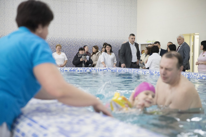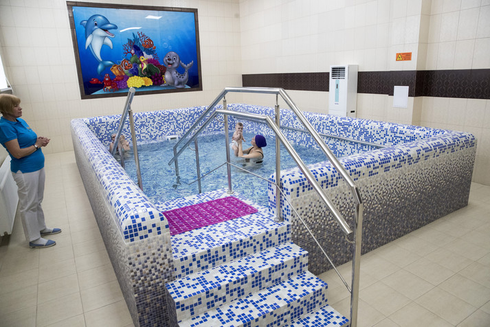 У поліклініці відремонтували також два басейни, які не працювали 15 років і більше 100 дітей на добу зможуть проходити курс лікувального плавання у цих басейнах.