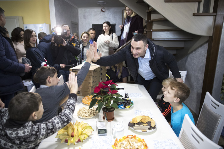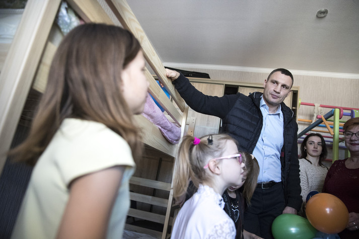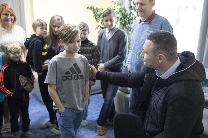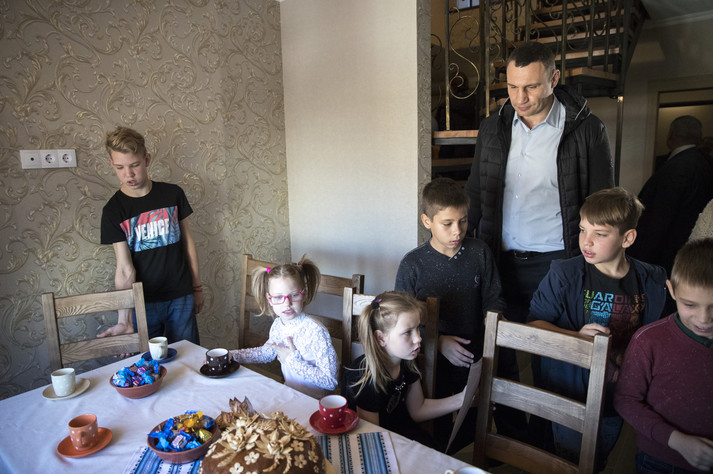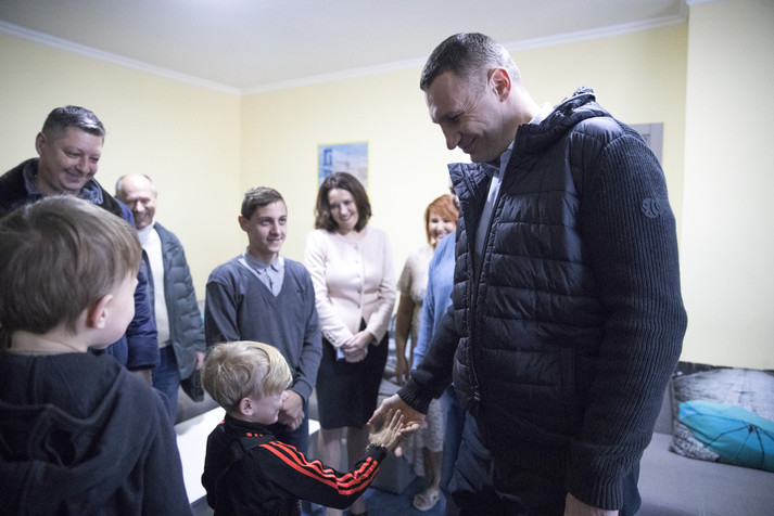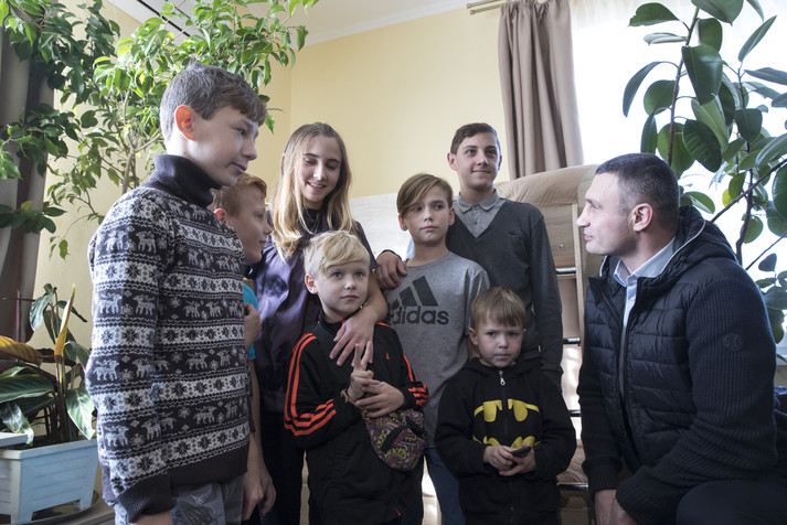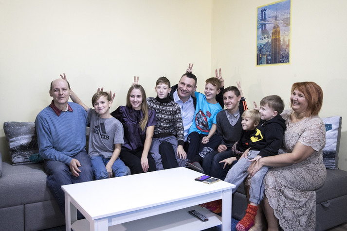 Мер Києва Віталій Кличко побував на новосіллі у двох дитячих будинках сімейного типу в Голосіївському районі столиці. Там дві київських родини, що взяли на виховання 19 дітей, заїхали в отримане житло в новому будинку на проспекті Академіка Глушкова.