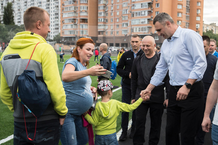 Мер Києва Віталій Кличко оглянув, як реконструюють стадіон «Русанівець» в Дніпровському районі столиці та поспілкувався з мешканцями мікрорайону. Завершити роботи і відкрити оновлений стадіон планують вже невдовзі. Про це повідомляє пресслужба столичного голови.