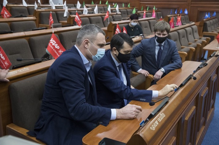 Столичний голова Віталій Кличко показав спікеру Верховної Ради Дмитру Разумкову, як у Київський міській раді працює система голосування «Рада-4», що унеможливлює неперсональне голосування депутатів.