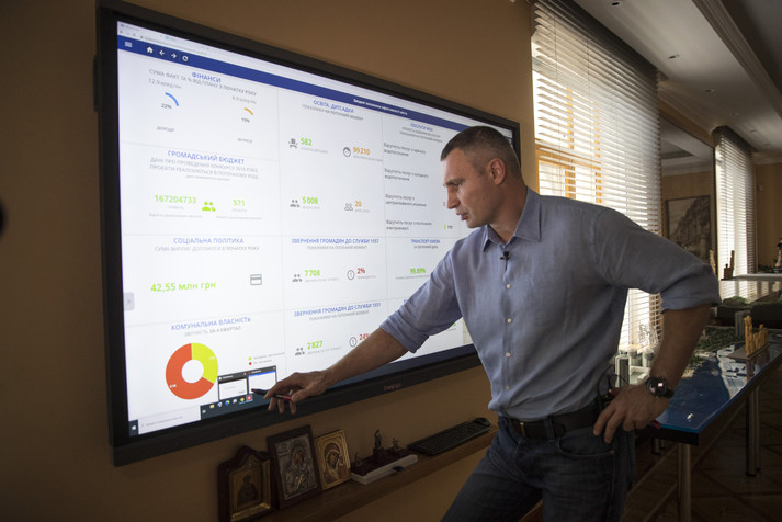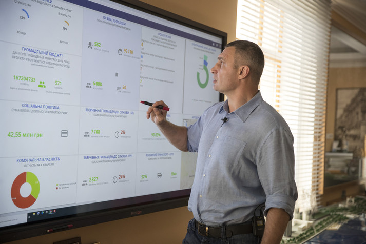 «Центр управління польотом – можна так назвати. Контроль різних сфер міста: транспорт, власність, бюджет, камери спостереження, медичні заклади. Все це можна побачити на екрані в режимі реального часу. Наприклад, надходження і витрати з бюджету. Або - як відбувається електронний запис до лікарів. Ми також бачимо моніторинг звернень по лінії «1551», - розповів мер Києва. - З цього кабінету, з офісу, я можу проконтролювати чимало процесів, що відбуваються в місті».