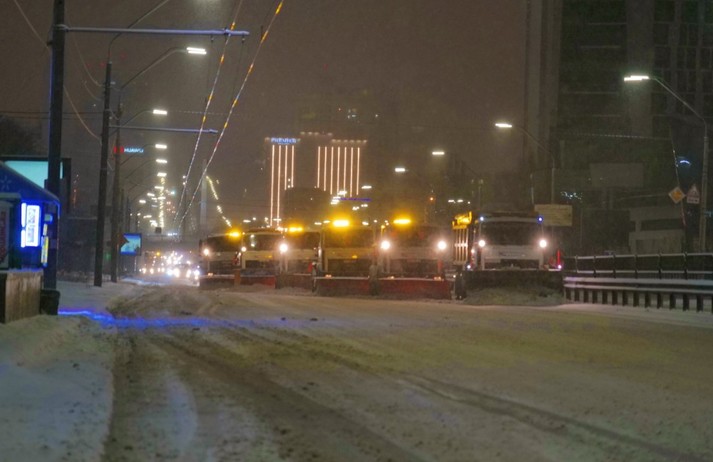 «Протягом всієї ночі місто прибирали загалом 577 одиниць спецтехніки «Київавтодору». У всіх районах працювали колони великої та малої техніки, що оперативно розчищали проїжджі частини від снігу. Майже 40 бригад з ручного прибирання вночі розчищали сніг на тротуарах і зупинках громадського транспорту. Усього останньої доби до прибирання в столиці були залучені майже 5200 працівників усіх комунальних підприємств. Ми зробили все можливе, щоб негода не паралізувала столицю», – наголосив мер Києва.