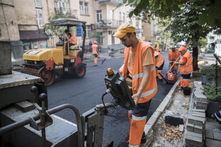 «Незважаючи на шалену спеку, працівники «Київавтодору» продовжують оновлювати заплановані об’єкти дорожньої інфраструктури. Наприклад, на вулиці Милославській та на проспекті Степана Бандери дорожники вже завершують облаштовувати тротуари та велодоріжки. На вулиці Івана Франка триває демонтаж старих підземних комунікацій та сходів. А на вулиці Андріївській вже кладуть покриття з гранітної бруківки», – написав мер.
