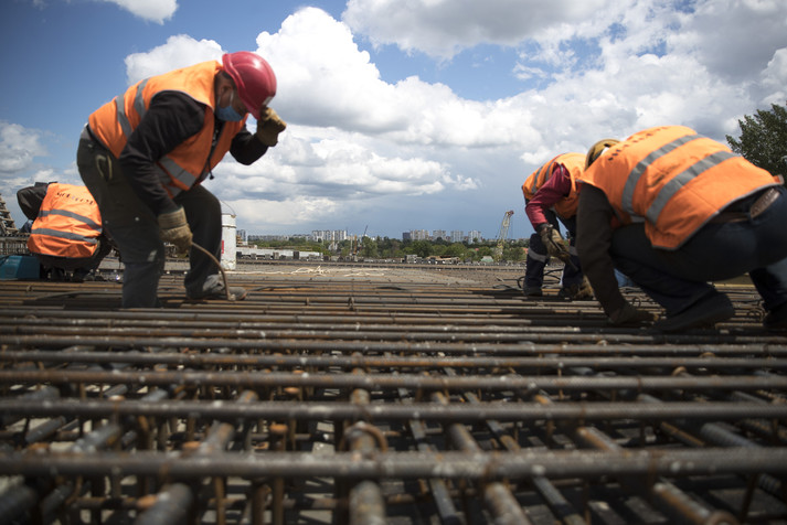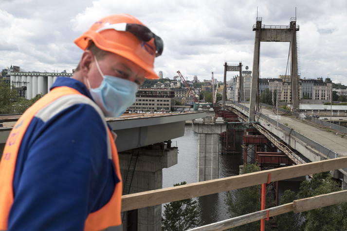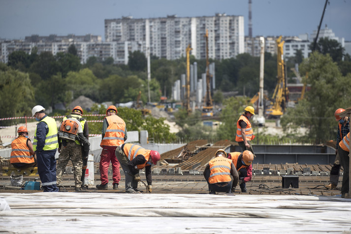 Паралельно збирають великі металеві конструкції, що стануть основою частини мосту в напрямку Подолу. І вже скоро за допомогою супердомкратів та потужних кранів їх встановлять на опори.