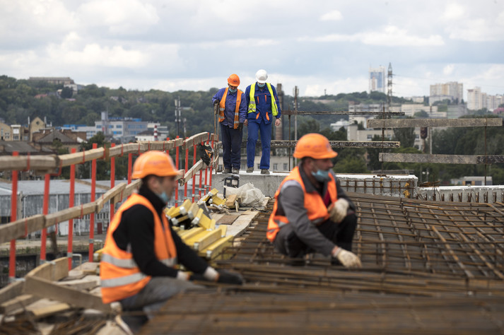 За його словами, сьогодні на мосту триває процес підготовки пішохідної частини, яка проходитиме під аркою. Там встановлюють спеціальну огорожу. Тривають і роботи зі спорудження порталів для майбутніх станцій метро.