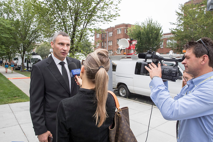 Перед церемонією в Національному соборі Вашингтона Кличко коротко поспілкувався з колишнім Держсекретарем США Джоном Керрі, спецпредставником Держдепу США з питань України Куртом Волкером, екс-мером Нью-Йорка Рудольфо Джуліані, колишнім президентом Грузії Михайлом Саакашвілі, іншими політиками.