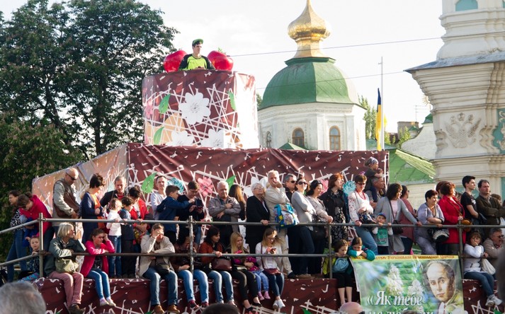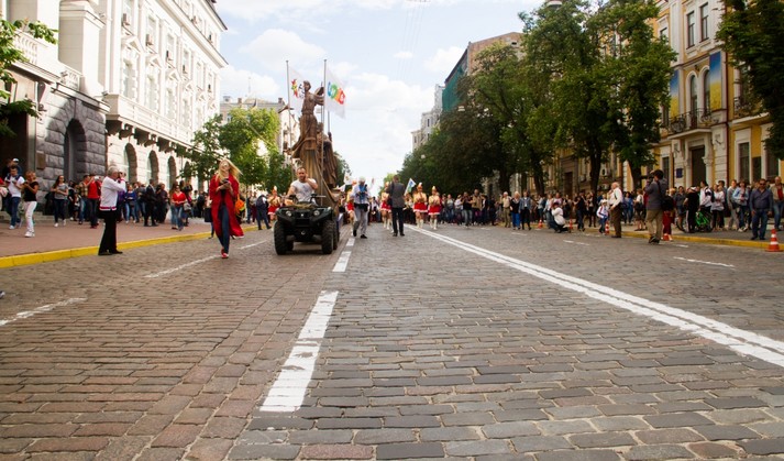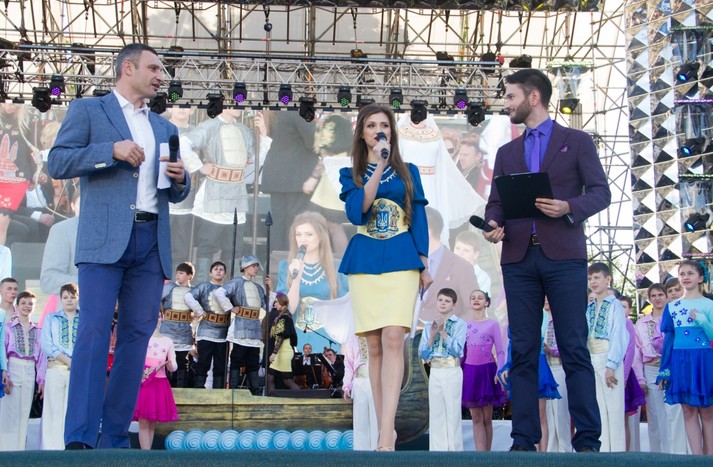 «У 2015-ому ми тут, на Софійській площі, поставили рекорд з масового виконання гімну Києва. А минулого року влаштували наймасовіший урок англійської мови разом з іншими містами України. А також відкрили найбільший у місті фонтан на Русанівській набережній!» – сказав мер Києва.