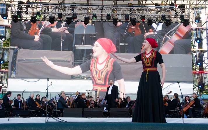 Під час відкриття святкування кияни та гості міста, які зібралися на площі, поставили новий рекорд із масового виконання гімну Києва під акомпанемент Державного естрадно-симфонічного оркестру України.
