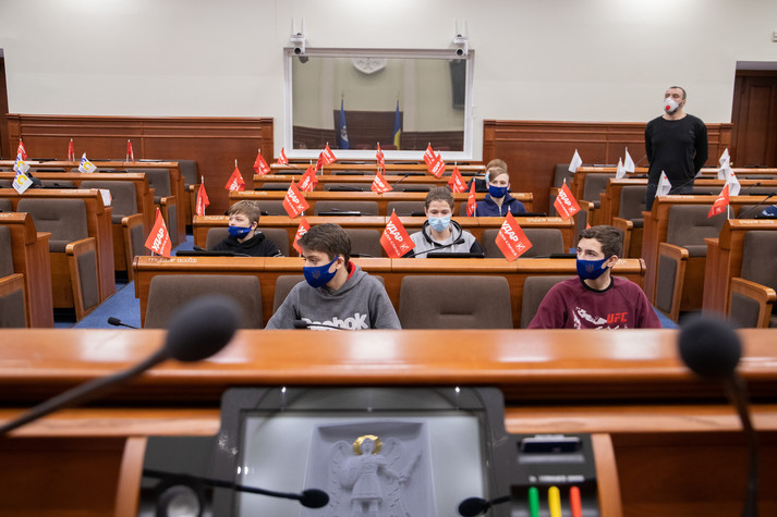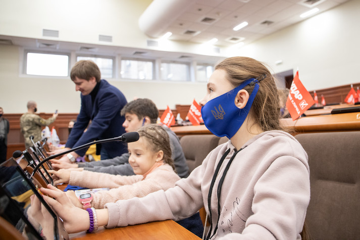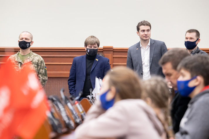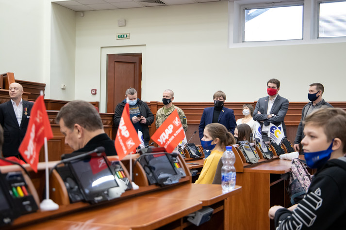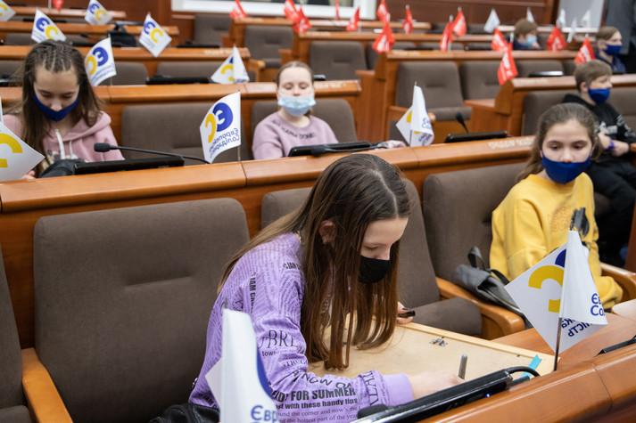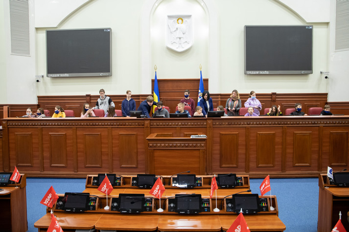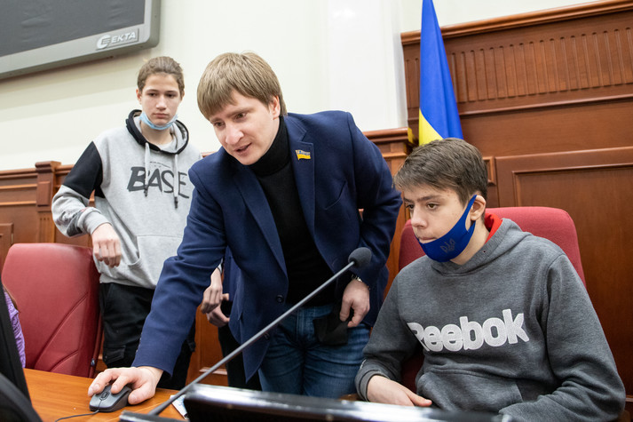 Поспілкувався з дітьми і заступник міського голови – секретар Київради Володимир Бондаренко. Він розказав школярам із Луганщини, як працюють депутати Київради, та показав систему для голосування.